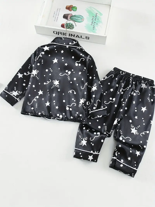Black Star Printed Unisex Nightsuit Set For Kids