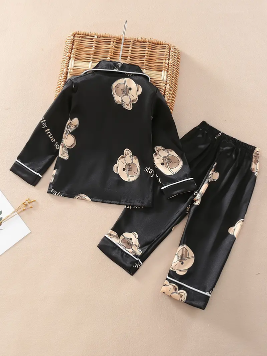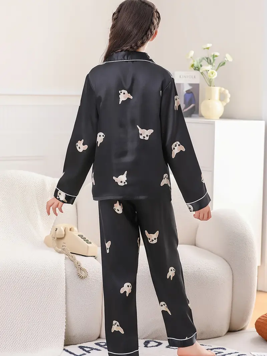Black Dog Printed Kids Unisex Nightsuit Set