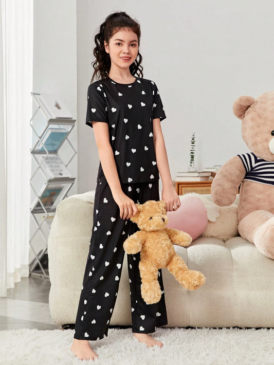 Black Heart Printed Girls Co-ords Set