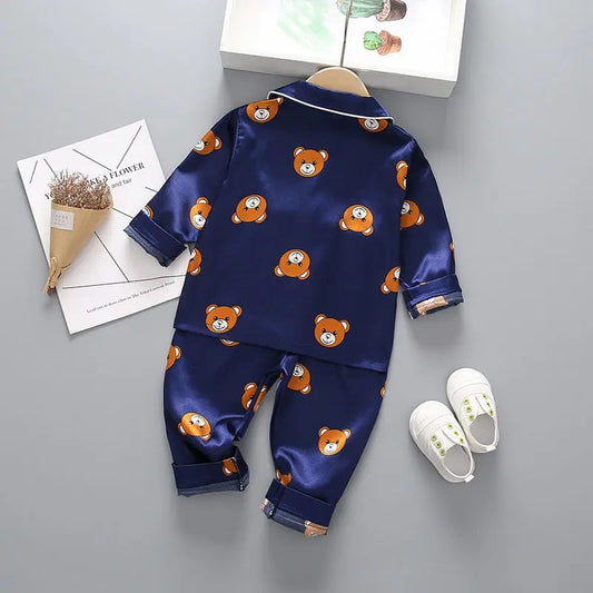 Blue Panda Printed Unisex Nightsuit Set For Kids