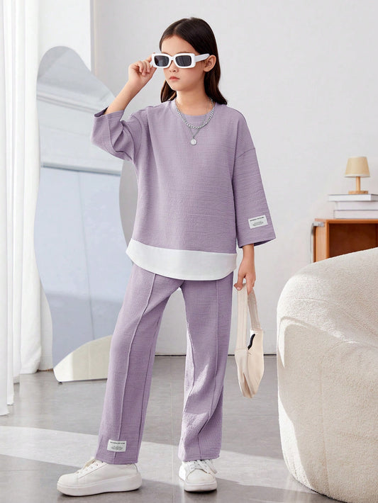 Girls Modern Solid Vest and Wide legs Pant Set ( Purple )