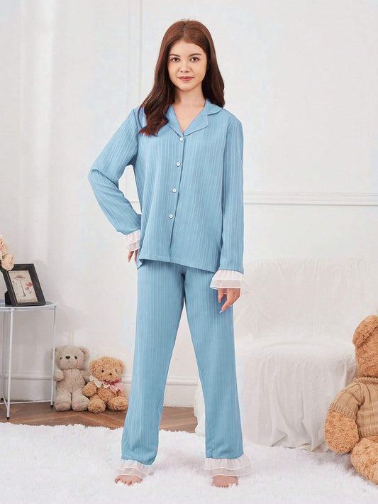 Girls T-shirt and Wide legs Pants Co-ords Set ( Light Blue )