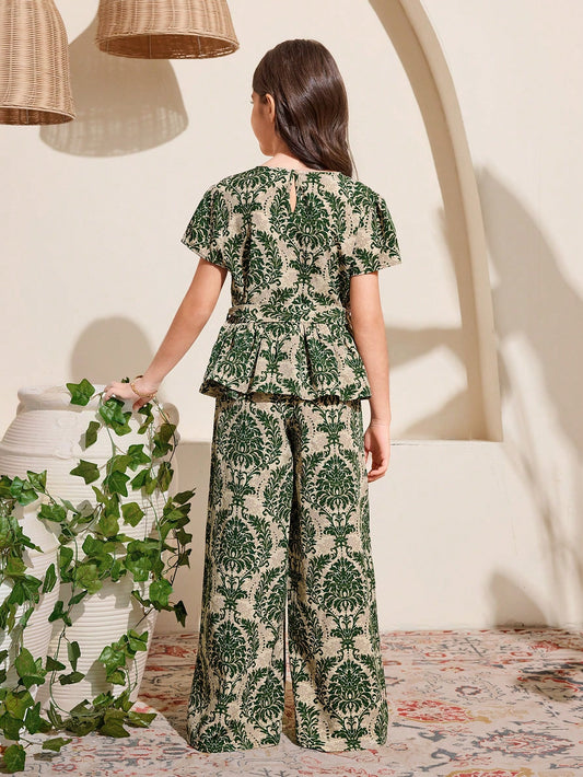 Girls T-shirt and Wide legs Pants Co-ords Set ( Green )