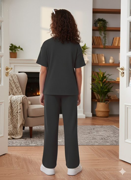 Girls T-shirt and Wide legs Pants Co-ords Set ( Black )