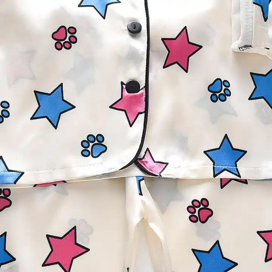 Star Printed Unisex Nightsuit Set For Kids