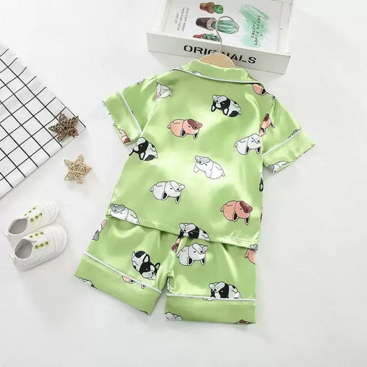 Green Puppy Printed Unisex Kids Nightsuit Set