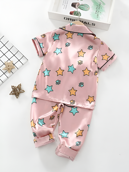 Star Printed Unisex Nightsuit Set For Kids