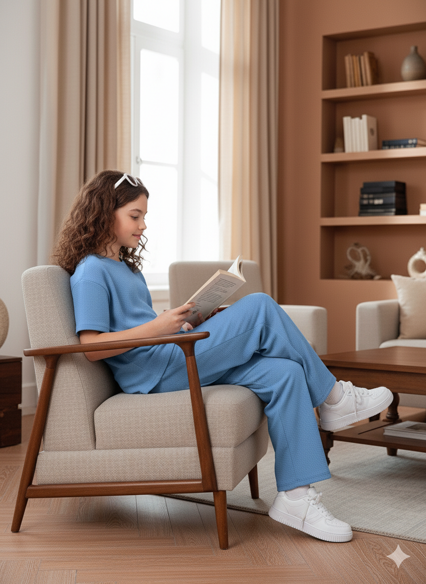 Girls T-shirt and Wide legs Pants Co-ords Set ( Light Blue )